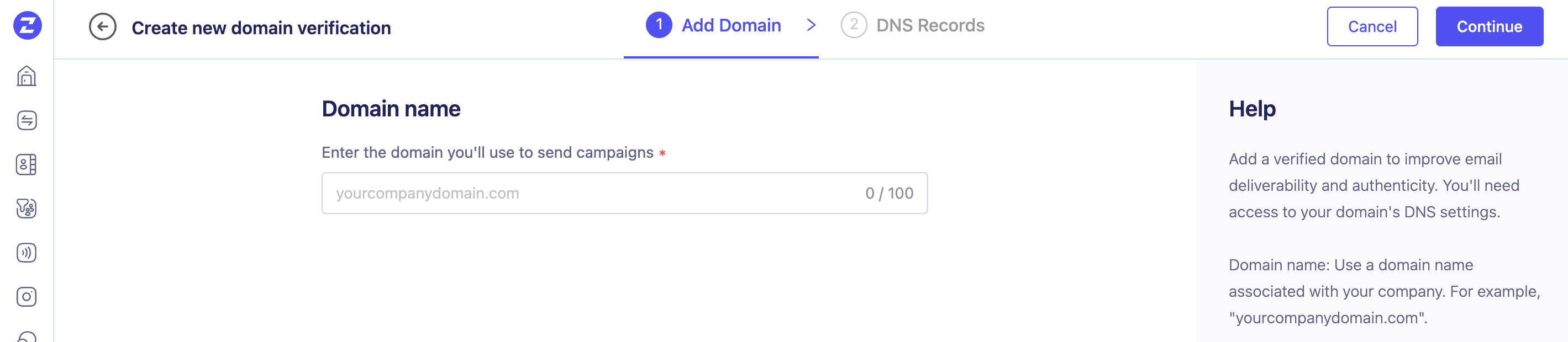 To get started with this in ZEPIC, you need to follow these two simple steps to verify your domain: